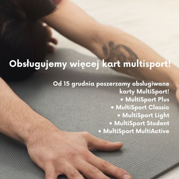 Akceptujemy karty Multisport Plus i Student, Medicover Sport (Go Fit, Fit&More), Fitprofit oraz PZU Sport.